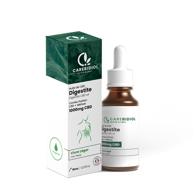 CAREBIDIOL vous propose l'huile DIGESTITE enrichi de 10% de CBD full spectrum associé à de l'extrait naturel de mélisse.