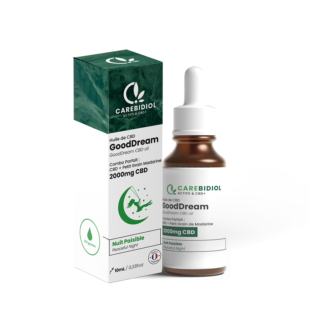 CAREBIDIOL a créé l'huile GOOD DREAM hautement enrichie de 20% de CBD full spectrum associé à de l'extrait naturel de petit grain mandarine.