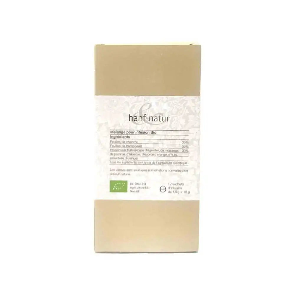 Cette infusion est un délicieux mélange de feuilles de chanvre, de feuilles de framboisier et de fruits variés, sans théine (caféine) ni tanins irritants.